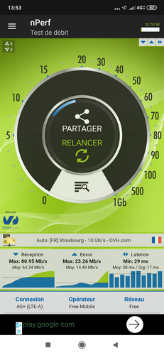 Nous avons atteint les 80 Mbit/s en intérieur depuis une zone résidentielle. Nous dépassions par contre à peine les 20 Mbit/s depuis la salle de rédaction d’Univers Freebox.