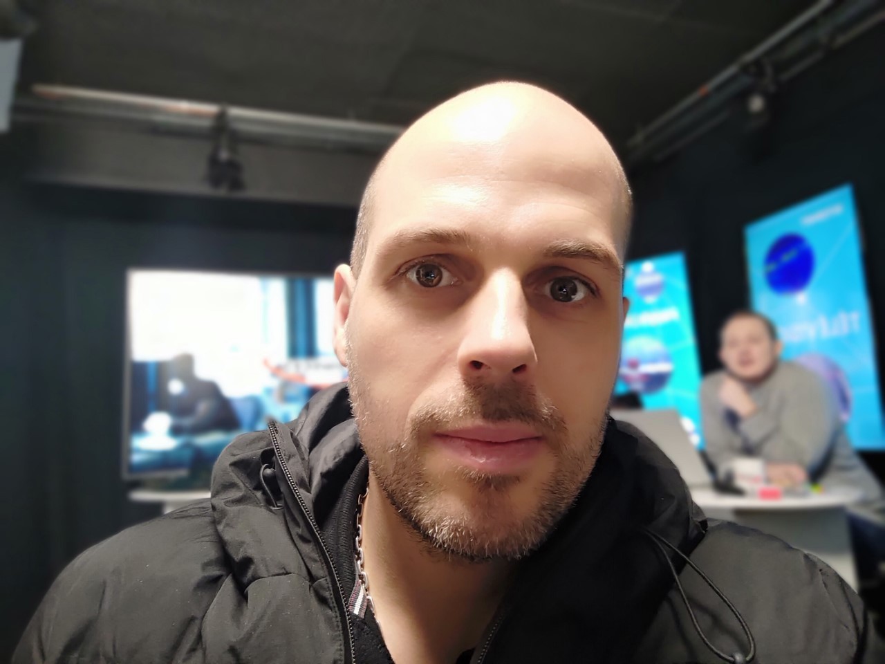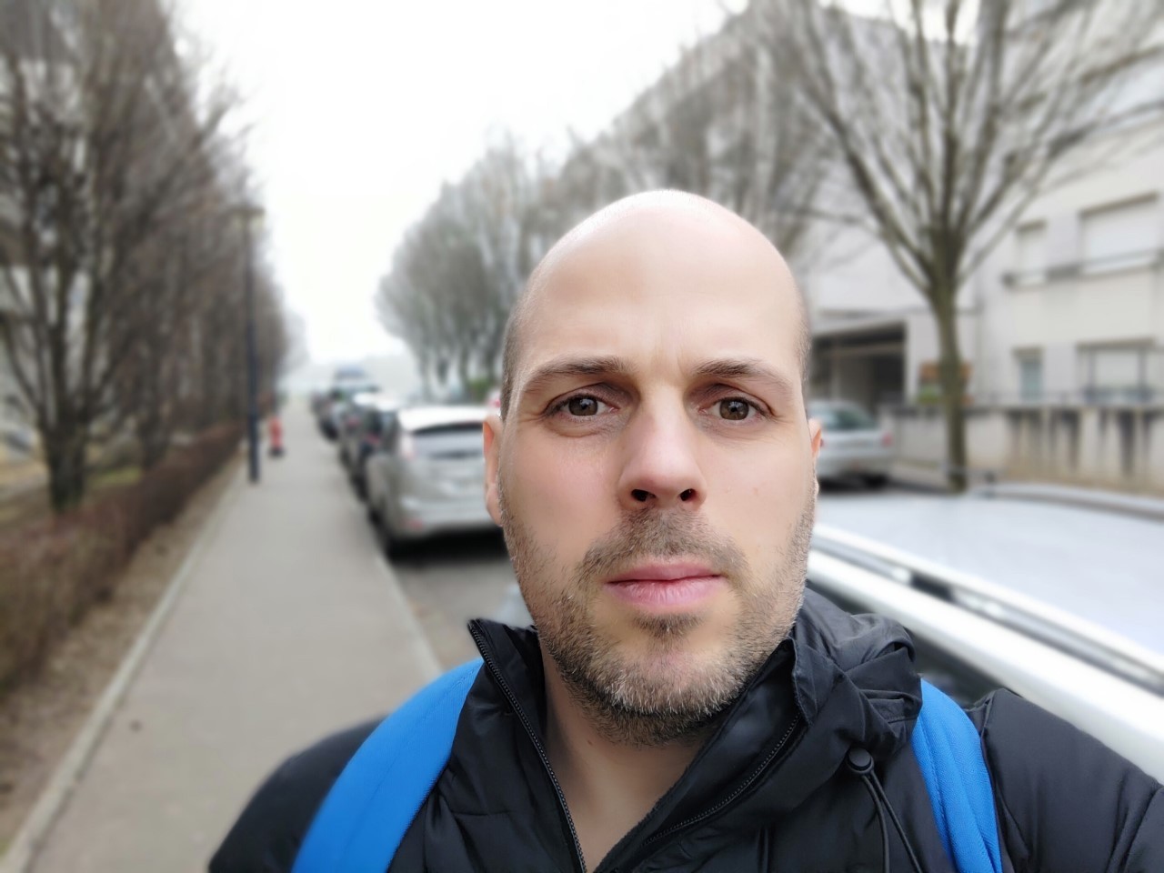 Deux selfies avec le mode portrait, en intérieur et en extérieur (avec Lucas qui bougeait en fond pour la seconde) :
