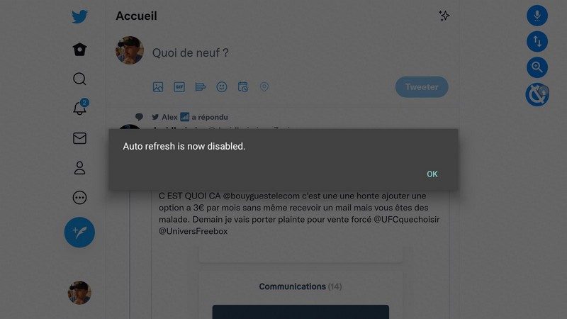 Le quatrième bouton permettra d’activer ou désactiver le rafraîchissement automatique de la page. Celui-ci est d’ailleurs activé par défaut.