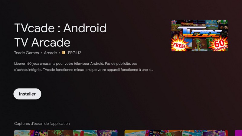 Commencez par installer l’application TVcade. Estampillée 1.2.3, la dernière version remonte au 4 septembre 2020. Elle pèse un peu plus de 50 Mo.