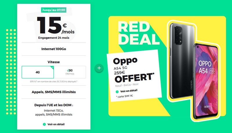 Jusqu’au 7 février 2022, Red by SFR propose un nouveau Red Deal, à savoir un smartphone offert en contrepartie d’un engagement d’une durée de 24 mois.