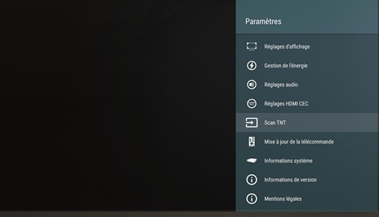 Sur Freebox mini 4K, depuis l’écran d’accueil, allez tout en bas et cliquez sur “Paramètres”. Il ne reste ensuite qu’à cliquer sur “Scan TNT”.