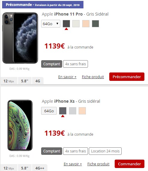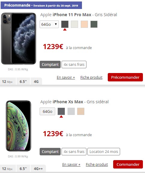 À la veille de la disponibilité des iPhone 11, iPhone 11 Pro et iPhone 11 Max, commander les modèles de la génération précédente ne permet aucune économie et n’a donc pas d’intérêt. Logiquement, Free Mobile devrait proposer des ristournes prochainement.