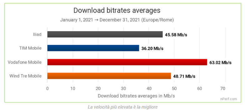 Près de quatre ans après son lancement, Iliad Italia n’arrive toujours pas à faire jeu égal avec ses concurrents. nPerf a réalisé au cour de l’année 2021 580 614 tests pour établir un classement des opérateurs ayant le réseau le plus performant. Si les performances de l’internet mobile, comme le fixe, se sont considérablement améliorées notamment avec un passage de plus en plus significatif à la 4G+ et à la 5G, le classement reste sensiblement le même.