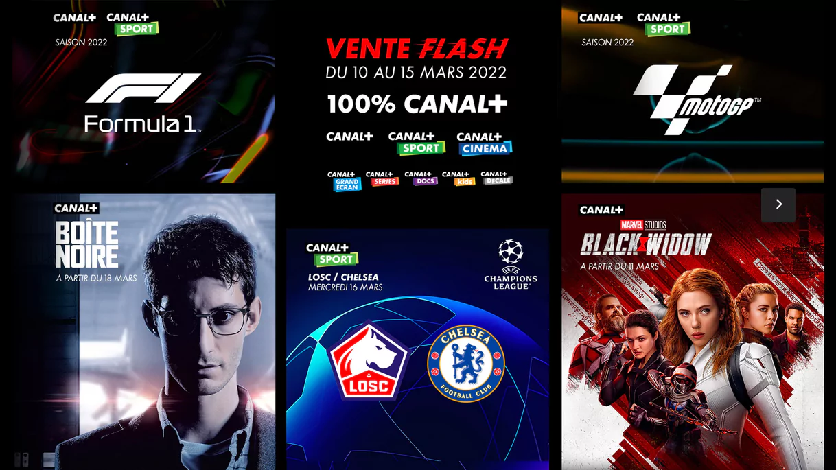 “Retrouvez du cinéma ultra-récent et des films cultes, des séries “Création Originale” et internationales exclusives, des docs et des contenus jeunesse. Vivez aussi de grands rendez-vous sport : UEFA Champions League, Ligue 1 Uber Eats, Premier League, TOP 14, Formule 1, Moto GP” annonce Canal pour présenter son offre spéciale, accessible sur les décodeurs Canal+, les boxs des opérateurs et tous les autres supports classiques (Smart TV, Apple TV, mobile, consoles…).