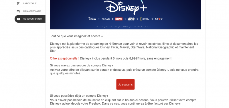 L’offre Disney+ offert pendant 6 mois est de retour dans l’espace abonné de certains abonnés Freebox Pop et Delta.