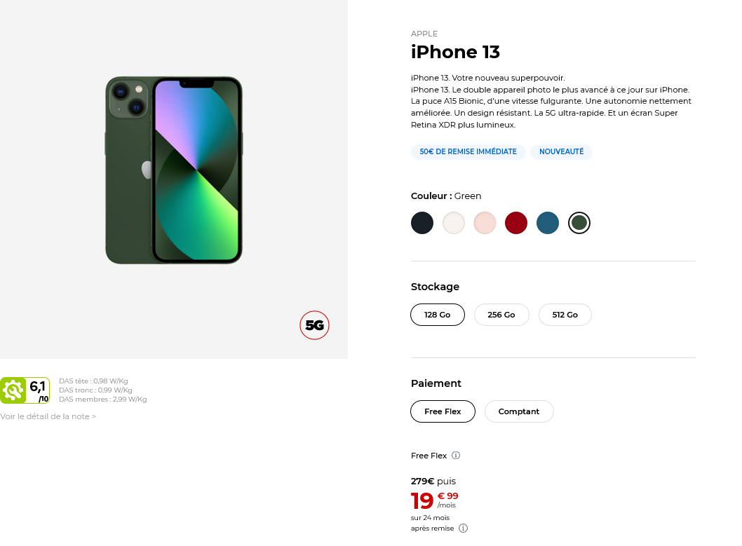 La réduction est également valable pour l’iPhone 13 mini, avec 50€ de remise. Pour la version réduite du flagship, vous pourrez ainsi débourser soit 759€ au comptant, soit 179€ à la commande puis 19.99€/mois pendant 24 mois en utilisant Free Flex.