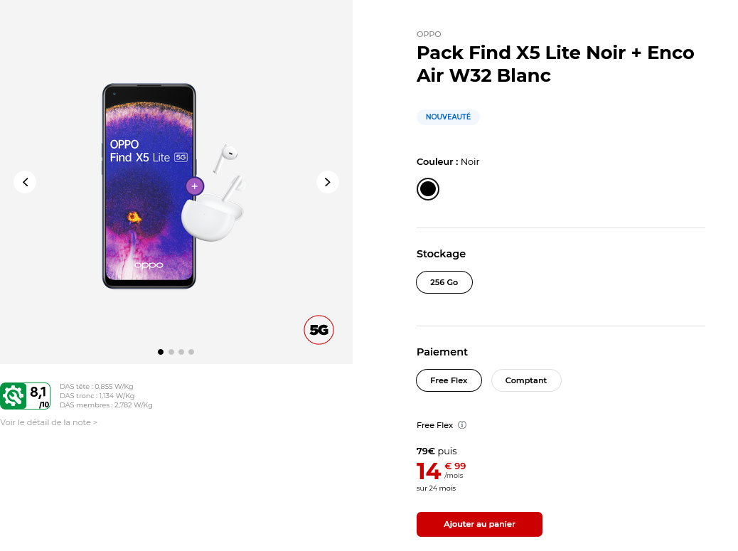 Envie de changer de smartphone ? La version allégée de la toute récente gamme Find X5 d’Oppo est désormais accessible dans la boutique en ligne de Free. Vous pouvez ainsi vous procurer le Oppo Find X5 Lite, proposé sous forme de pack incluant une paire d’écouteurs Enco Air W32 blanc. Il est proposé à 499€ pour un achat au comptant dans son coloris noir et avec 256 Go de stockage, mais vous pouvez également opter pour la solution Free Flex. Si vous faites ce choix, vous paierez alors 79€ à la commande puis 14.99€/mois sur 24 mois.
