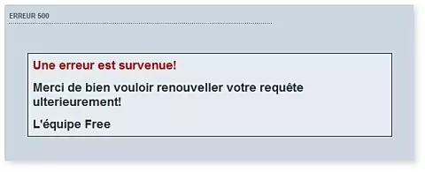 Selon nos constations, et vos nombreux témoignages, l’interface de gestion des abonnés Free est hors service depuis plus de 24 heures – Erreur 500.