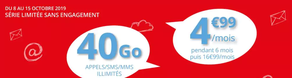 Jusqu’au 15 Octobre, Auchan Télécom propose un forfait 40 Go en série limitée. Sans engagement de durée, celui-ci revient à 4,99 euros par mois au lieu de 16.99 euros. Le tarif promotionnel est valable 6 mois avant un retour au tarif normal et réservé aux particuliers pour toute nouvelle souscription. Notez que la carte SIM triple découpe, payable à la commande, coûte 10 euros.