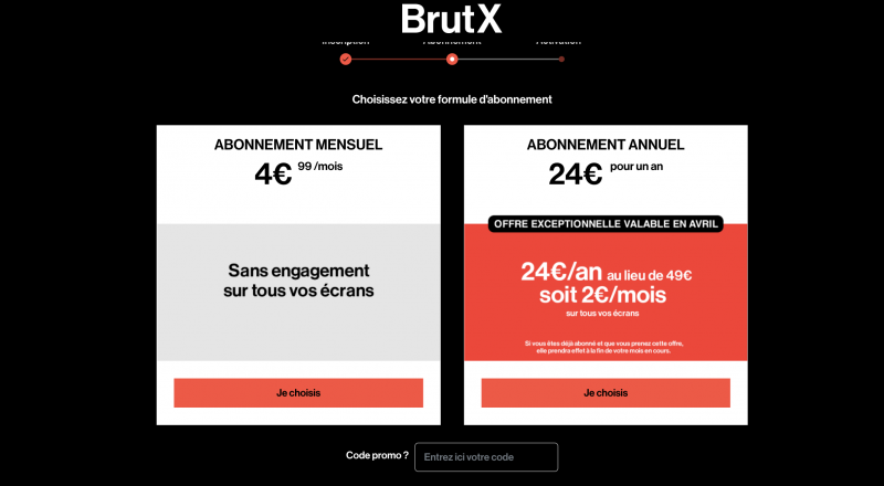 Alternative à Netflix, Prime Video et consorts, le français BrutX lance une promo sur son abonnement annuel, proposé à 2€/mois.