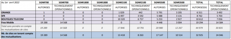 - 17 147 sites 5G sont autorisés dans la nouvelle bande 3,5 GHz (Bouygues Telecom, Free Mobile, Orange et SFR), dont 10 514 sont déclarés techniquement opérationnels.