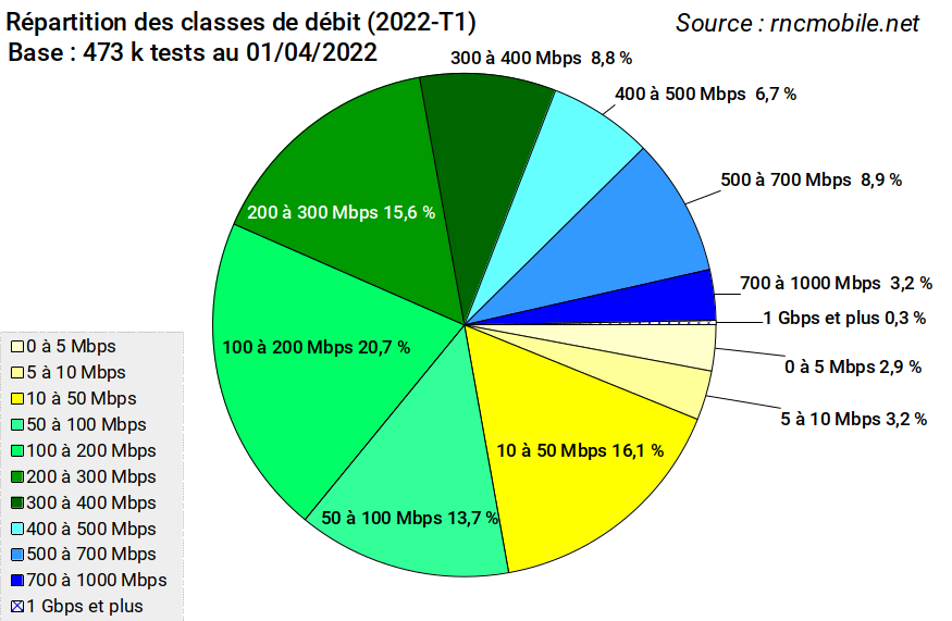 A titre d’exemple, sur les mesures réalisées en mars dernier, 55% (5858 tests) ont été réalisés sur la nouvelle génération de téléphonie mobile, 56,3% en janvier et 52,6% en février. Une stabilisation qui cependant reste en deçà des performances de décembre 2021, où 59% des tests se basaient sur la 5G. Concernant les débits durant le premier trimestre, 20.7% des tests atteignaient entre 100 et 200 Mbps, 35.9% des mesures atteignaient des débits plus bas et 43% dépassaient les 200 Mbps. Les 400 Mbps, sorte de valeur repère pour un très bon débit mobile, ont été dépassés dans 19.1% des cas soit bien plus que la moyenne annuelle de 2021 (7.1%). Dépasser 1Gbps reste cependant une exception, avec seulement 0.3% des speedtests atteignant ou dépassant ce seuil.