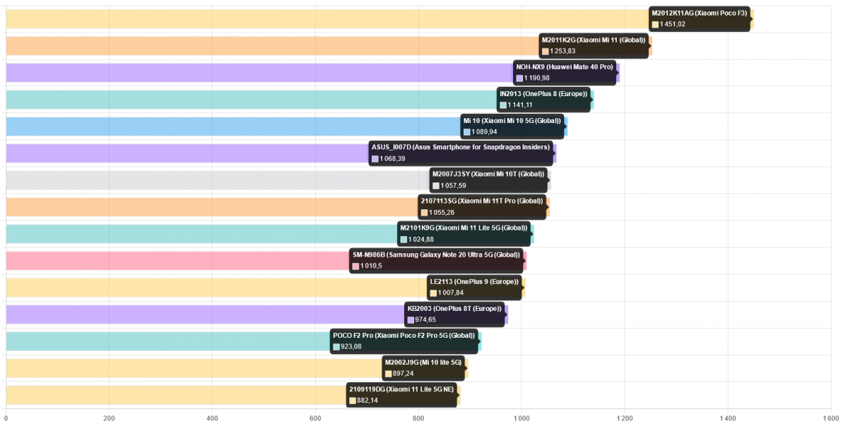 Pour atteindre la vitesse supérieure sur un réseau mobile, il est nécessaire de disposer d’un smartphone compatible et performant. L’observatoire de RNC Mobile dresse ainsi la liste des smartphones ayant permis d’obtenir les meilleurs débits. Xiaomi occupe les deux premières places avec  le Poco F3 et le Mi 11, suivi par Huawei et son Mate 40 Pro et en 4e place se trouve le OnePlus 8. Des performances atteignables notamment grâce à la capacité d’agrégation de ces différents smartphones.