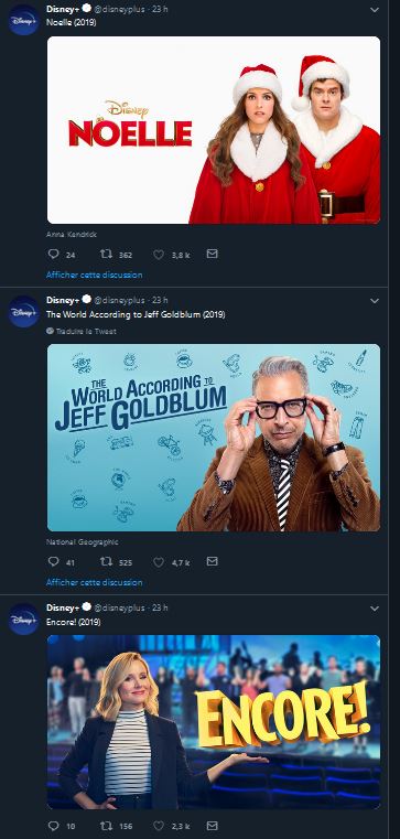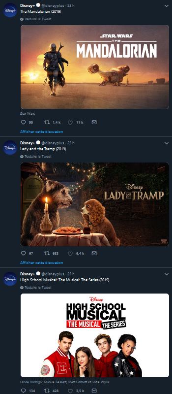 Une stratégie plutôt agressive, qui met sous le nez des gens le catalogue et montre bien l’ampleur du catalogue proposé. En plus, il est difficile de dire que l’on ne connaît aucun film parmi les quelque 600 tweets postés par Disney+.
