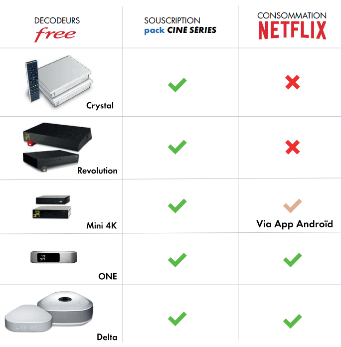Les modèles de Freebox sur lesquelles le nouveau pack Ciné Séries avec Netflix est disponible