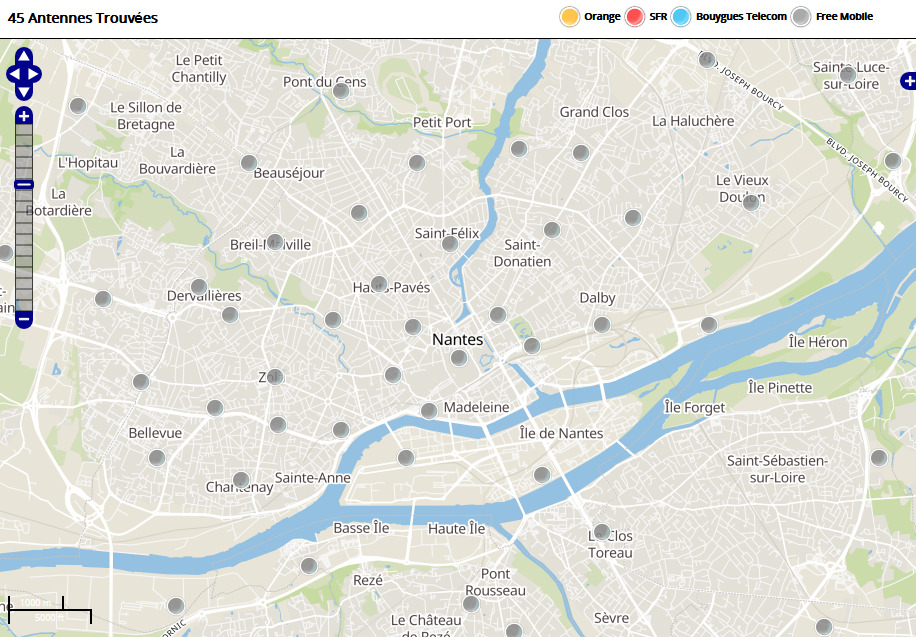 Découvrez la répartition des antennes mobiles Free 3G/4G sur Nantes