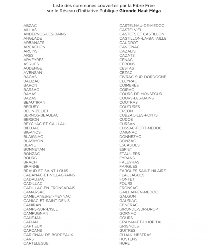 “A terme, nous serons présents sur l’ensemble des prises déployées par Gironde Haut Méga. En zone privée, sur ce département, les offres Fibre Free sont par ailleurs déjà disponibles sur l’ensemble des logements déployés dans l’agglomération de Bordeaux Métropole et sur la ville de Libourne soit 508 000 logements”, précise Free.
