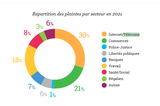 Près d’un tiers des plaintes à la CNIL en 2021 touchaient Internet et les télécoms