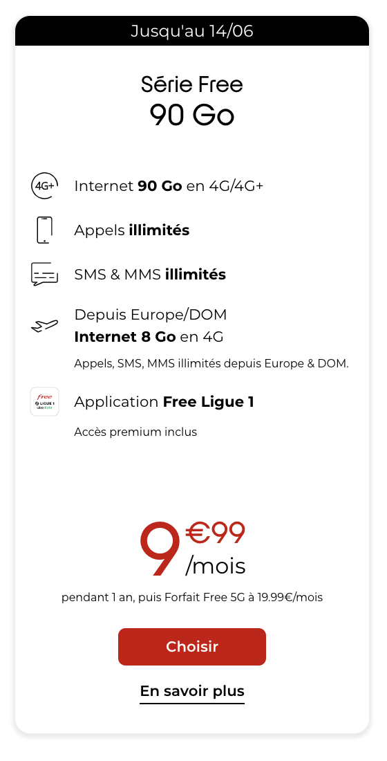 Dès aujourd’hui et jusqu’au 14 juin prochain, Free Mobile propose une nouvelle offre Série Free comprenant 90 Go à moins de 10€.