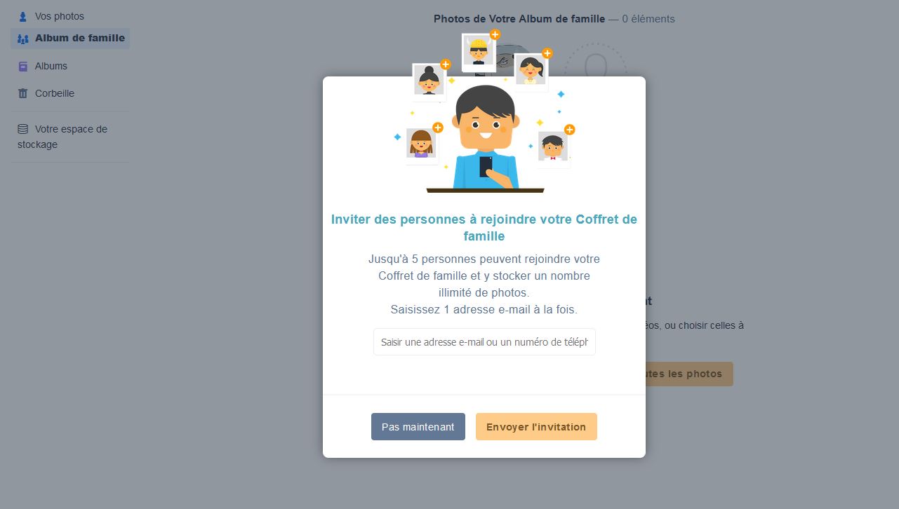 A noter qu’il existe également une fonctionnalité d’album de famille, qui permet donc de créer un album accessible à plusieurs personnes autorisées que vous aurez invité via un mail et qui pourront y stocker un nombre illimité de photos.