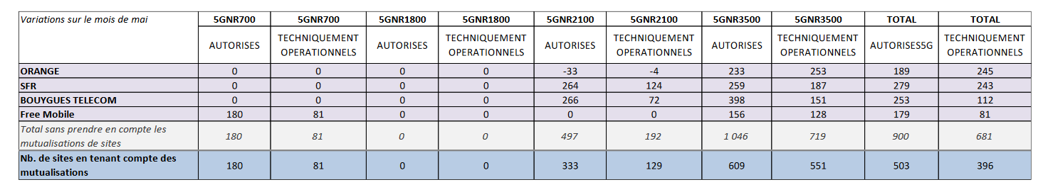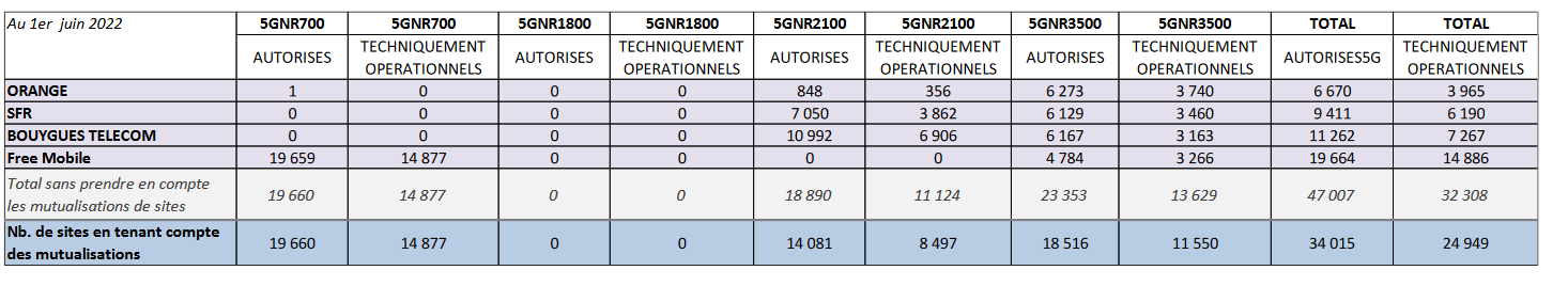 – 19 660 sites dans la bande 700 MHz, dont 14 877 sont déclarés techniquement opérationnels
