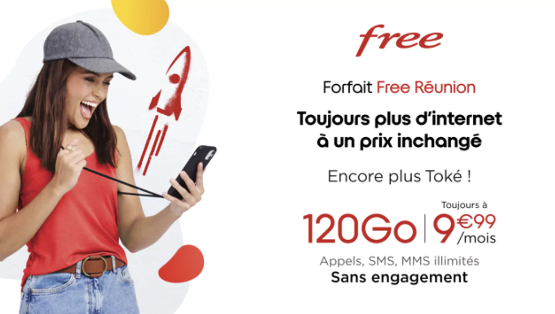 Lancé en 2017, le forfait « complètement Toké » de Free a déjà été enrichi en 2019 avec une enveloppe de données passant de 25 à 50Go/mois. Cette nouvelle augmentation de la data incluse est valable pour tous les abonnés au Forfait Free Réunion, actuels et nouveaux, et ce, de manière automatique.
