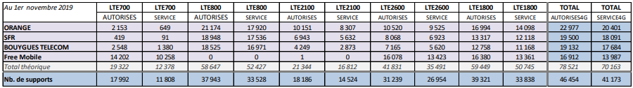 - Orange (20 401 sites, + 347 en octobre 2019) ;