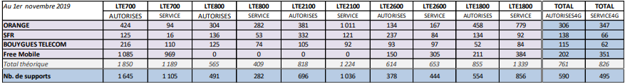 - Free Mobile (13 987 sites, + 351 en octobre 2019).