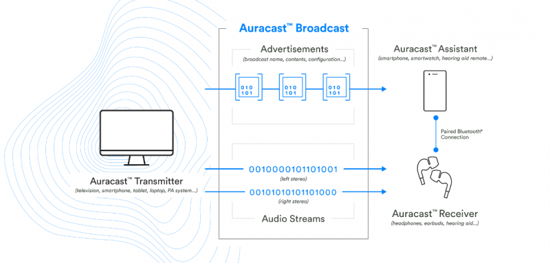 Cependant, le Bluetooth SIG a fait une grande annonce en ce mois de juin qui annonce un pas de géant. En effet, la fondation a dévoilé une nouvelle marque appelée “Auracast“. En résumé, cette nouveauté basée sur la technologie Bluetooth offrira la possibilité de diffuser de l’audio à un nombre illimité d’appareils dans les alentours contre uniquement deux avec la norme actuelle.