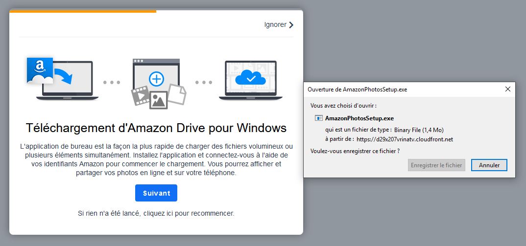 Il suffit en effet de se rendre sur Amazon.fr/photos et de saisir vos identifiants Amazon pour en profiter. Une fois identifié, il vous sera proposé de télécharger l’application de bureau Amazon Drive (pour Windows et Mac) ainsi que l’application mobile (iOS et Android) afin d’avoir accès à votre cloud quand vous voulez. Côté utilisation sur PC, c’est assez simple.