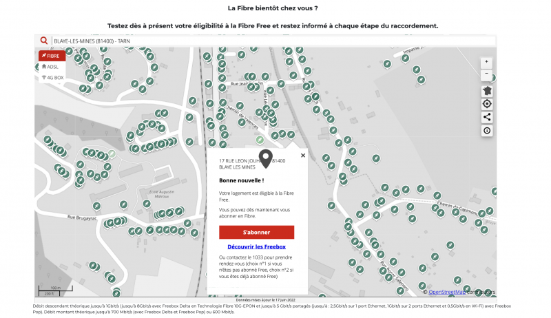 A l’heure où Orange, Sosh, SFR et Red by SFR proposent d’ores et déjà leurs offres FTTH sur le RIP Tarn fibre en Occitanie, Free commence à rendre éligibles de nombreuses adresses , signe d’une officialisation à venir. Selon l’outil d’éligibilité de l’opérateur, des communes comme Blaye-les-Mines, Brens, Roquecourbe, Labastide-Saint-Georges, Loupiac ou encore Gaillac et tant d’autres, sont à présent partiellement couvertes.