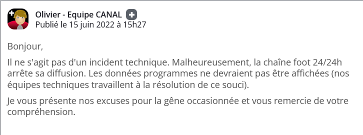 Un message de l’assistance Canal+ a en effet confirmé l’arrêt de cette diffusion et une communication plus officielle doit être publiée prochainement.