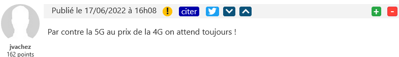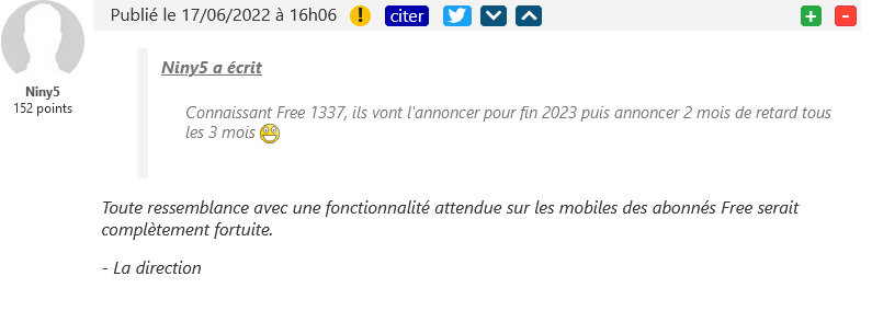 Parmi les petites piques adressées aux divers opérateurs, certains rappellent qu’un seul propose la 5G sans surcoût, quand d’autres s’amusent de la tendance de Free aux annonces qui pourraient mettre longtemps avant de se concrétiser.
