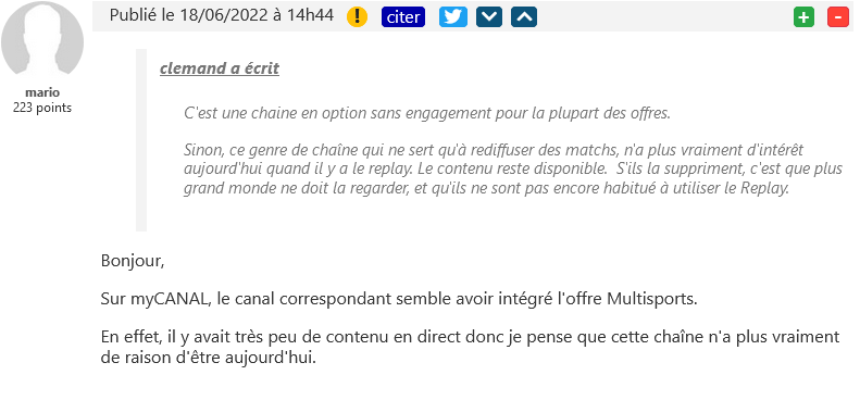 Les abonnés Canal+ Sport doivent dire adieu à la chaîne Foot+. L’assistance de la filiale de Vivendi a en effet confirmé l’arrêt de diffusion de cette chaîne, qui proposait dans une diffusion en boucle de nombreuses rencontres sportives. Si certains affirment que cette suppression pourrait constituer un motif de résiliation, d’autres questionnent l’utilité d’une telle chaîne, à l’heure des replays accessibles facilement.