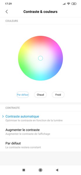 Parlons maintenant de l’écran. Si on ne profite pas d’un AMOLED, le rendu des couleurs restent plutôt agréable. La dalle offre aussi une assez bonne luminosité pour l’usage en extérieur. La chaleur d’affichage peut être réglée depuis les paramètres.