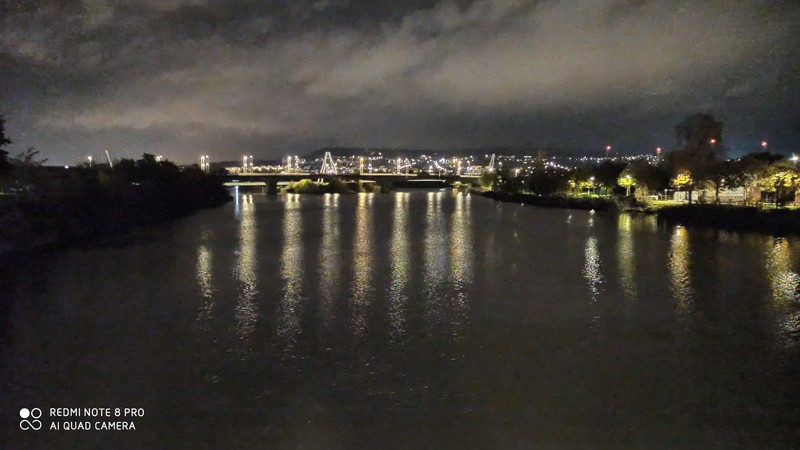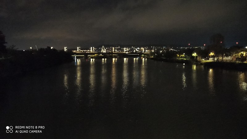 Une photo de nuit prise de loin et sa version corrigée par le mode dédié (sans faire de miracle) :