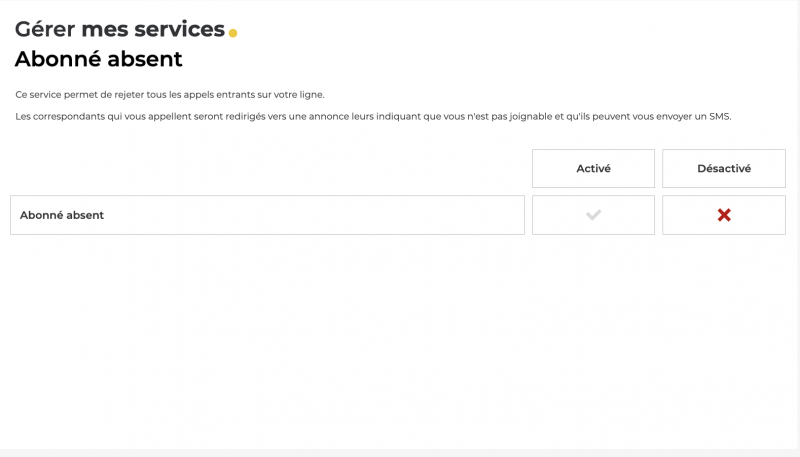 Une fois connecté à l’Espace Abonné, allez dans la rubrique “Mon forfait mobile”, puis la sous-rubrique “Mes services”. Il ne reste qu’à activer l’option “Abonné absent”.