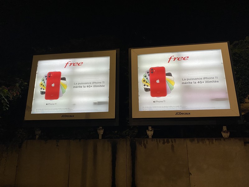Free lance une nouvelle campagne de publicité sur le mobilier urbain. Celle-ci met en avant le dernier smartphone de la firme à la pomme.