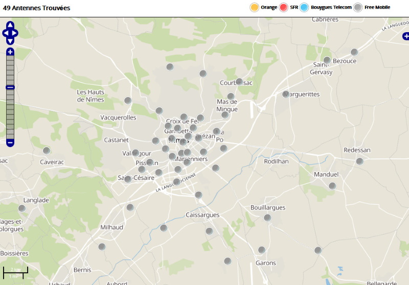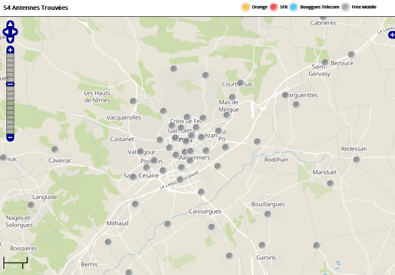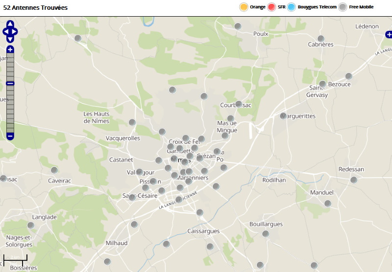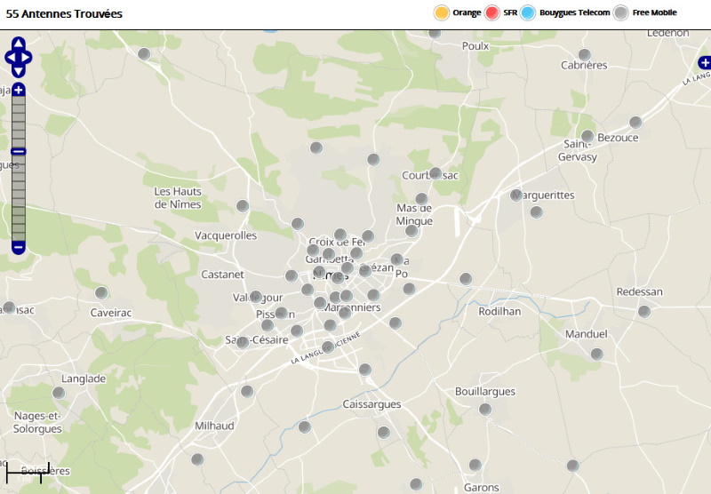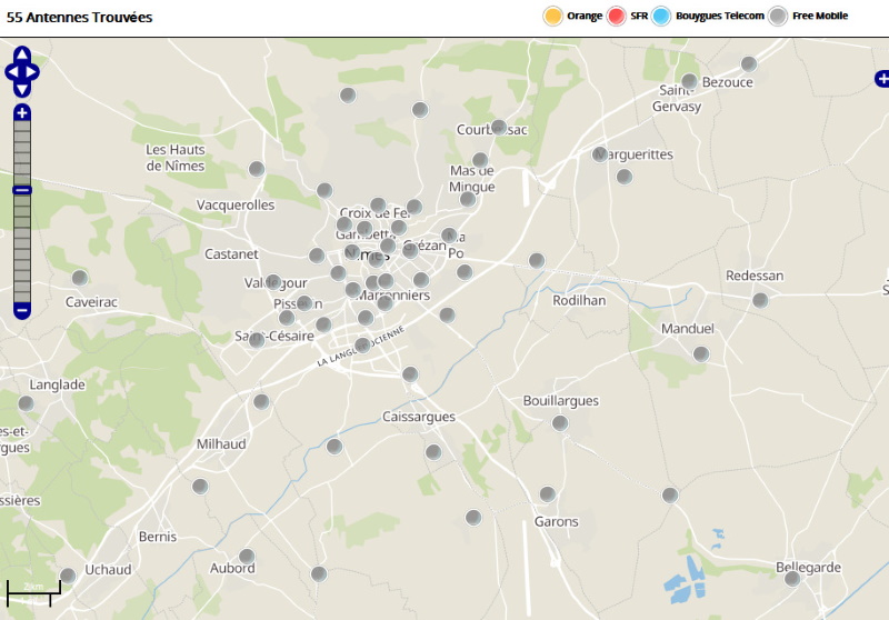 Découvrez la répartition des antennes mobiles Free 3G/4G sur Nîmes