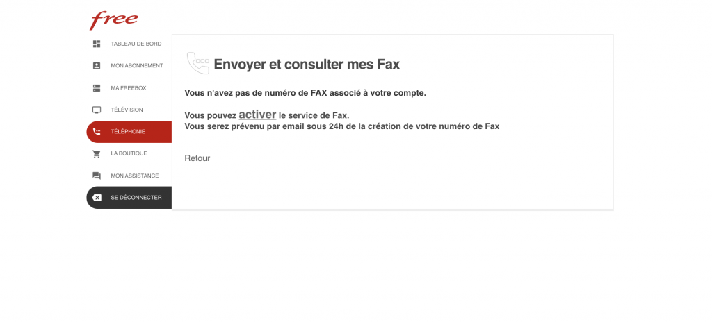 Une technologie encore utilisée par certaines entreprises, mais plutôt délaissée par le grand public fait de la résistance sur la Freebox. Free laisse en effet toujours la possibilité à ses abonnés fixe d’émettre ou recevoir des fax via un service gratuit dédié. Pour ce faire, il suffit de se connecter à l’Espace Abonné, puis de se rendre dans l’onglet “Téléphonie”, avant de cliquer sur “Envoyer et consulter mes fax”. Si votre numéro de fax n’a pas été généré, sa création vous sera demandée automatiquement et sera effective dans un délai de 24 heures.