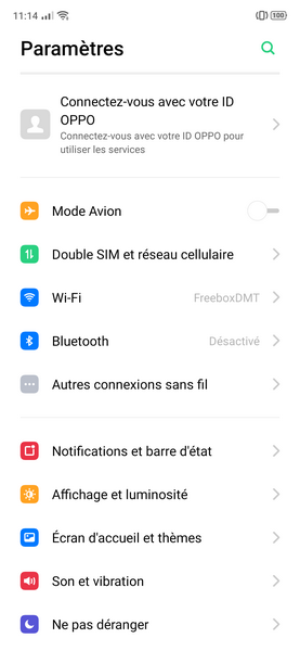 La partie logicielle du Oppo Reno2 Z repose sur Android 9.0 Pie. On reconnaît rapidement la ROM ColorOS du constructeur à ses icônes très colorées et ses icônes de raccourci carrées.