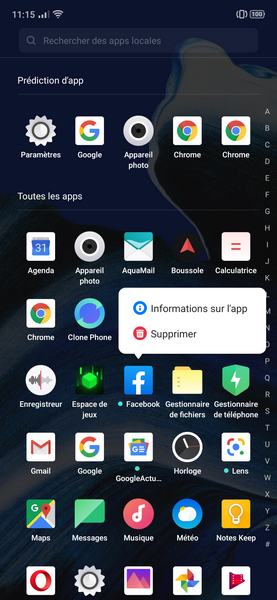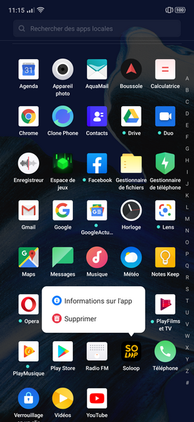 Elle s’accompagne de quelques applications, du fait de partenariats : Facebook, Opera ou Soloop. Elles peuvent être désinstallées.