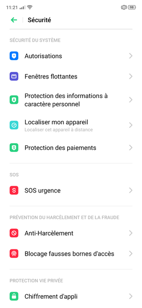 Parlons du volet sécurité, avec une section dédiée et particulièrement riche en fonctionnalités (anti-harcèlement, blocage des fausses bornes d’accès, coffre-fort et espace enfants).
