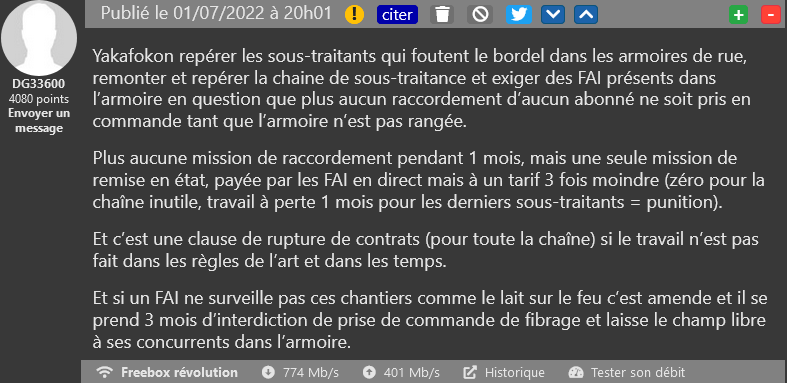Quand d’autres envisagent carrément une refonte en terme de gestion des réseaux fibre.