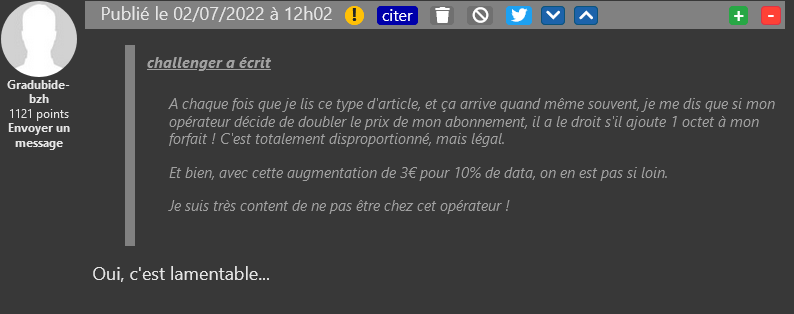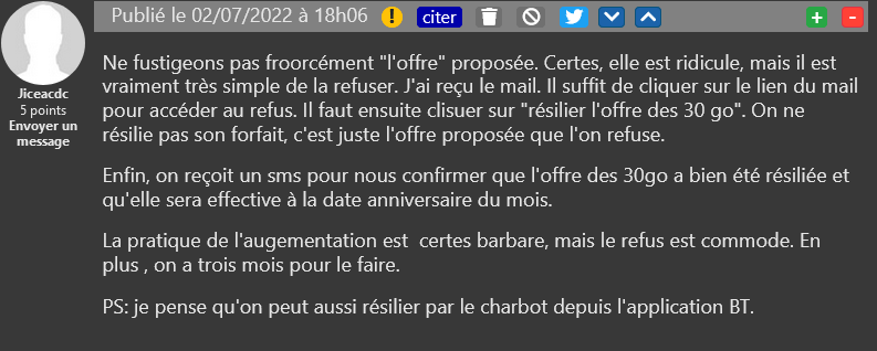 D’autres préfèrent mettre de l’eau dans leur vin, arguant (avec raison) que le forfait reste encore très intéressant… Jusqu’à la prochaine augmentation peut être ?