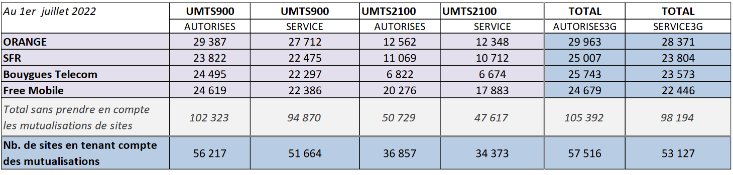 Il est à noter que certains des sites autorisés dans les différentes bandes de fréquences sont mutualisés. Ceci explique pourquoi la somme des sites autorisés par bande de fréquences n’est pas égale à la totalité des sites autorisés.