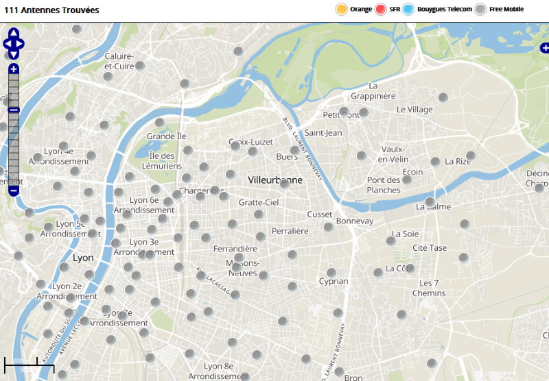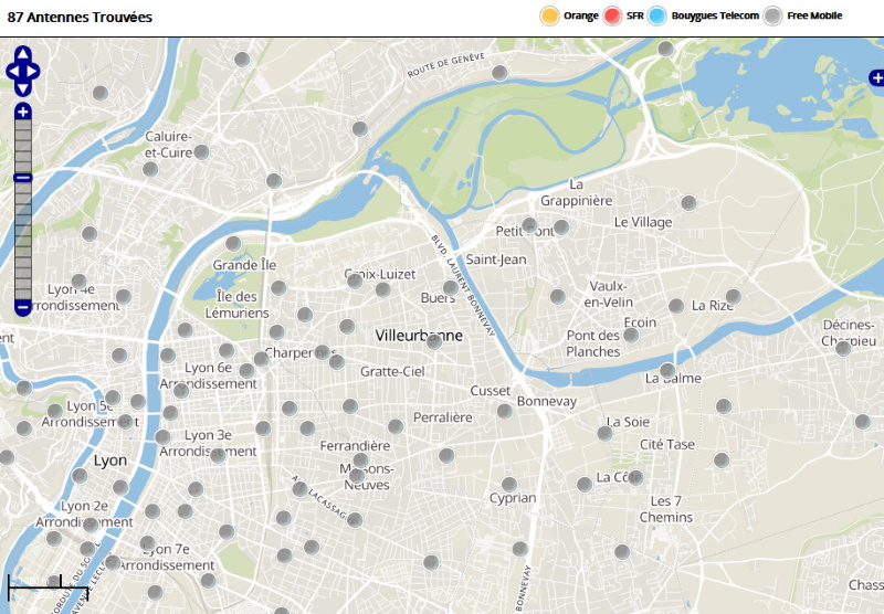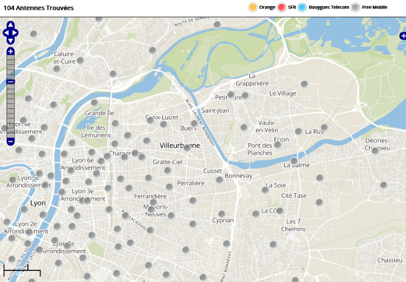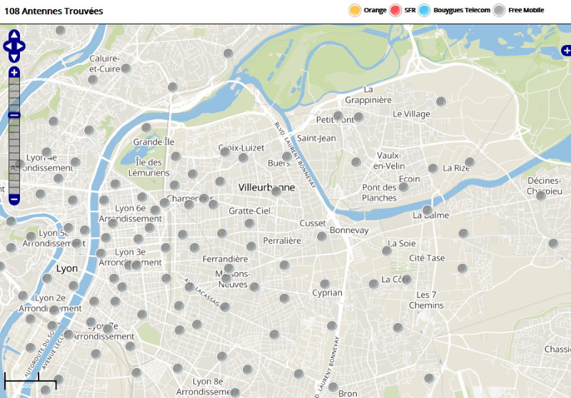 Découvrez la répartition des antennes mobiles Free 3G/4G sur Villeurbanne