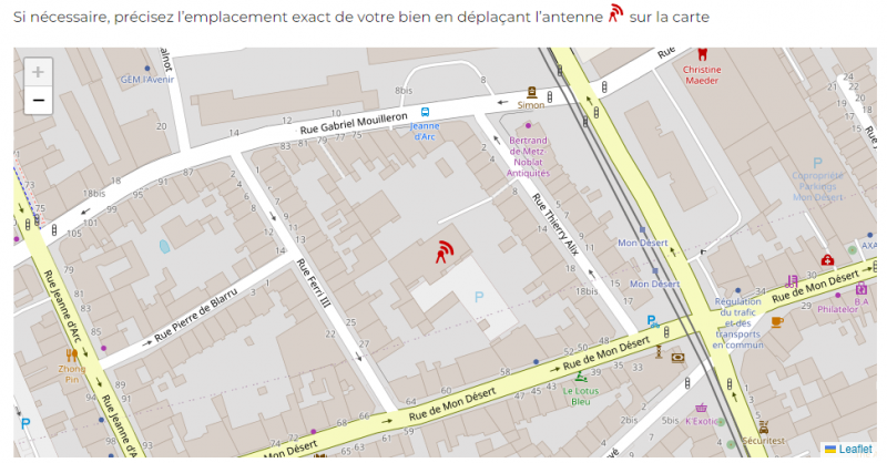 Après avoir décris votre bien, une carte interactive vous permet de placer précisément l’antenne là ou se trouve votre propriété :