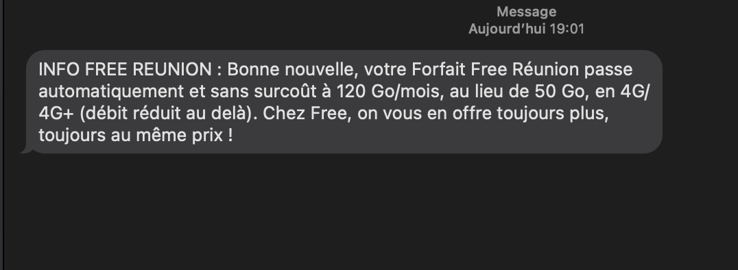 Free Réunion envoie un SMS à ses freenautes pour leur annoncer une bonne nouvelle